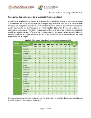 Cuadro 1. Sitios muestreados donde se presentaron mangas en 2019