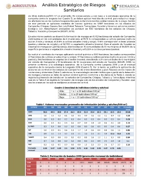 acciones de control en los estados de Campeche de enero-diciembre y para Tabasco en los meses de